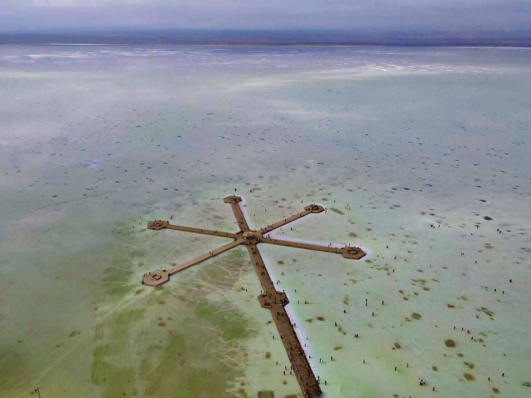 2023年7月29日,青海省海西蒙古族藏族自治州,航拍察尔汗盐湖。