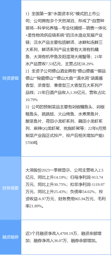 该股为预制菜,白酒,水产养殖概念热股。