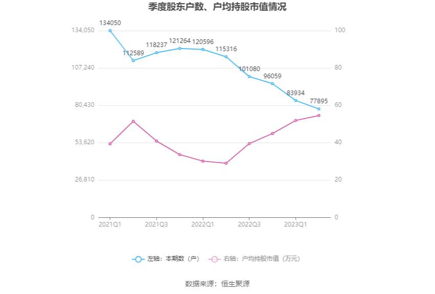 筹码集中度方面,截至2023年二季度末,公司股东总户数为7.79万户,较一季度末下降了6039户,降幅7.19%;户均持股市值由一季度末的51.94万元上升至54.59万元,增幅为5.10%。