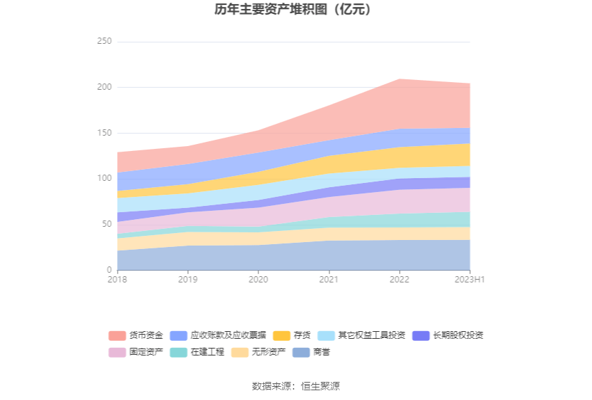 资产重大变化方面,截至2023年二季度末,公司货币资金余额较上年末减少10.97%,占公司总资产比重下降2.41个百分点;应收账款较上年末减少14.64%,占公司总资产比重下降1.13个百分点;存货余额较上年末增加8.24%,占公司总资产比重上升0.78个百分点;在建工程较上年末增加9.96%,占公司总资产比重上升0.63个百分点。