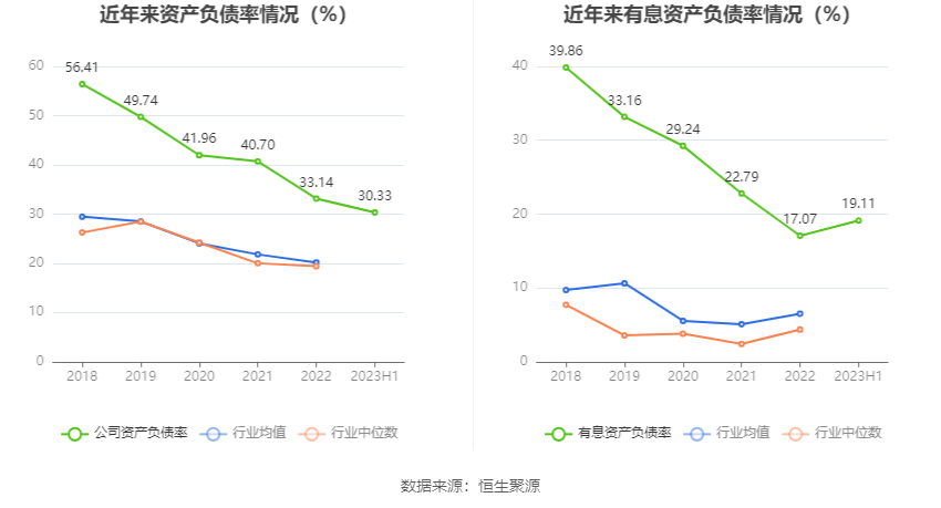 偿债能力方面,公司2023年二季度末资产负债率为30.33%,相比上年末减少2.81个百分点;有息资产负债率为19.11%,相比上年末增加2.04个百分点。