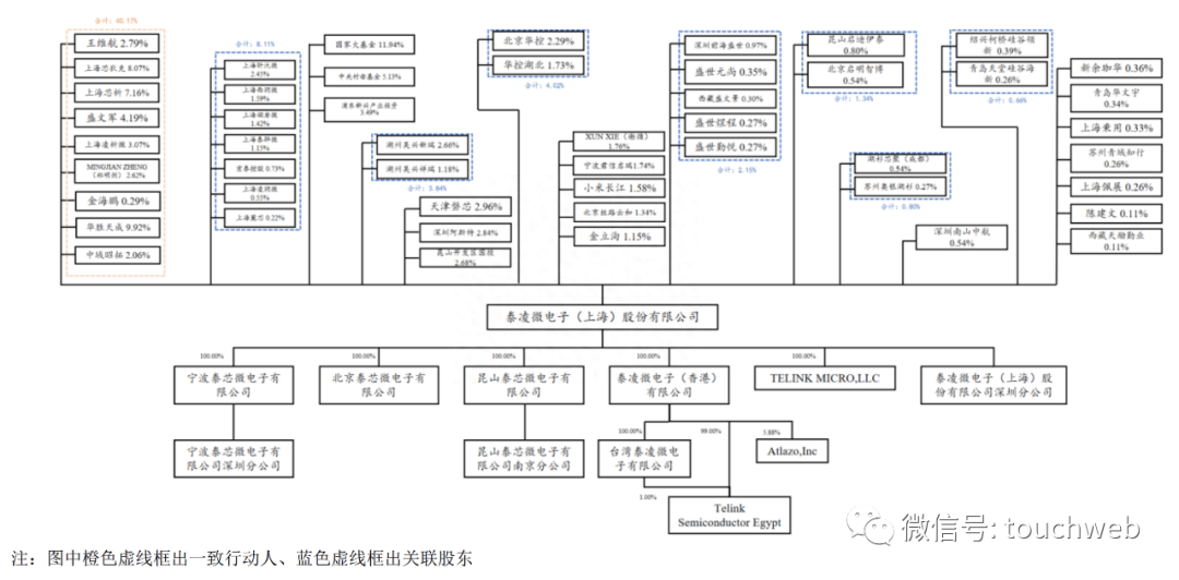 泰凌微的实际控制人为王维航,其直接持有公司2.79%的股份,通过上海芯狄克、上海芯析间接控制8.07%、7.16%股份;