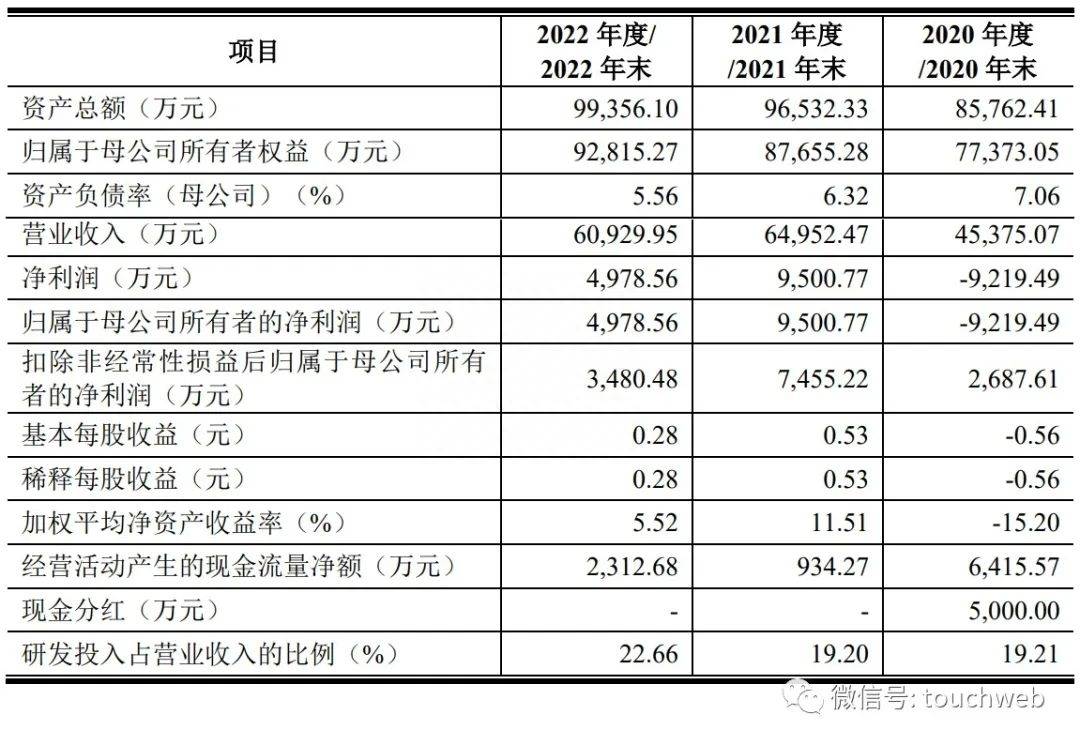 招股书显示,泰凌微2020年、2021年、2022年营收分别为4.54亿元、6.45亿元、6.09亿元;净利分别为-9219.49万元、9501万元、4978.56万元;扣非后净利分别为2687.6万元、7455万元、3480.48万元。