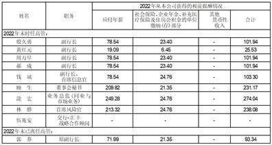 1.2015年起,本公司中央管理的高级管理人员,其薪酬按中央金融企业负责人薪酬管理相关办法执行。上表中高级管理人员税前报酬为2022年度任职期间全部年度报酬数额,其中包括已于2022年年度报告中披露的数额,不含发放的以前年度绩效年薪和任期激励收入。