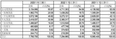 个人贷款余额24,160.37亿元,较上年末增加507.20亿元,增幅2.14%,在客户贷款中的占比较上年末下降1.44个百分点至30.99%。其中个人住房贷款较上年末减少158.21亿元,降幅1.05%,在客户贷款中的占比较上年末下降1.54个百分点至19.20%;信用卡贷款较上年末增加30.82亿元,增幅0.65%。