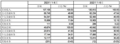 本集团的业务主要分成四类:公司金融业务、个人金融业务、资金业务和其他业务。本集团在所示期间按业务板块划分的利润总额和营业收入情况如下: