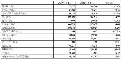 报告期内,本集团实现利润总额496.74亿元,同比增加40.32亿元,增幅8.83%。利润总额主要来源于利息净收入和手续费及佣金净收入。