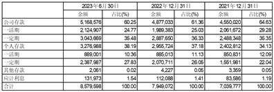 客户存款是本集团最主要的资金来源。报告期末,本集团客户存款余额85,795.98亿元,较上年末增加6,305.26亿元,增幅7.93%。从客户结构上看,公司存款占比60.25%,较上年末下降1.11个百分点;个人存款占比38.19%,较上年末上升1.01个百分点。从期限结构上看,活期存款占比35.13%,较上年末下降1.03个百分点;定期存款占比63.31%,较上年末上升0.93个百分点。