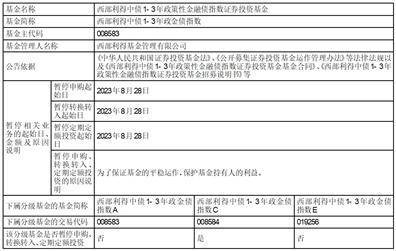 1、本公告仅对本基金E类份额开放日常申购、赎回、转换有关事项予以说明。投资者欲了解本基金的详细情况,请详细阅读登载于公司网站(www.westleadfund.com)和中国证监会指定的基金电子披露网站(http://eid.csrc.gov.cn/fund)的《西部利得中债1-3年政策性金融债指数证券投资基金基金合同》、《西部利得中债1-3年政策性金融债指数证券投资基金招募说明书更新(2023年8月)》等相关资料。