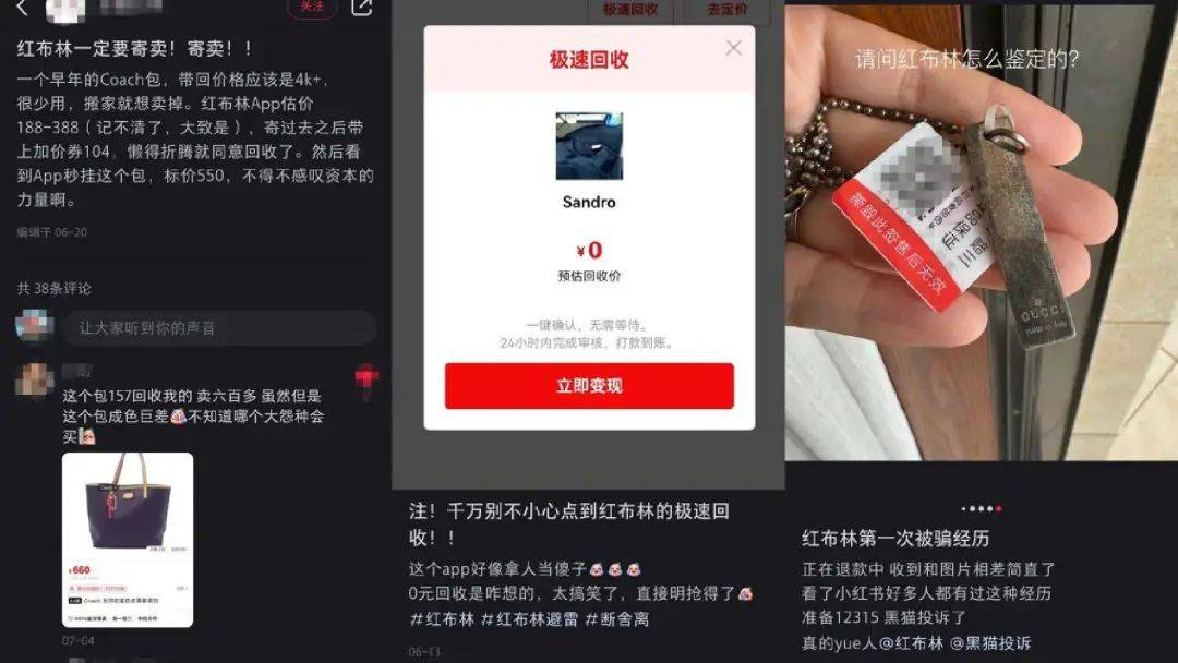 定价方面,有小红书用户表示其在红布林寄售一件Sandro品牌衣服时,不小心点击了极速变现模式(用户自主确定初始定价,平台进行调价,且不可修改),结果预估回收价竟然变成了0元,该用户惊呼:“0元回收是咋想的,太搞笑了,直接明抢得了。”更有卖家为买家鸣不平:一个成色很差的包,平台以157元的价格回收,又标价六百多元卖掉,不知道哪个“大怨种”会买。