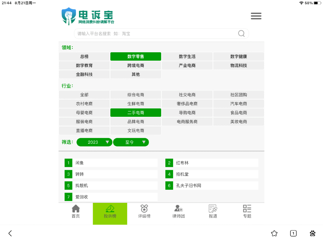 网经社旗下的网络消费纠纷调解平台“电诉宝”的数据显示,红布林已位列二手电商投诉榜第二名(数据范围:2023年1月至8月中旬),其投诉量仅排在闲鱼之后。红布林属于垂直电商,红布林的投诉量已经超过转转等综合电商,足以说明其投诉量之大。