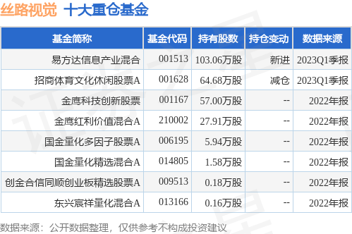 根据2023Q1季报公募基金重仓股数据,重仓该股的公募基金共2家,其中持有数量最多的公募基金为易方达信息产业混合。易方达信息产业混合目前规模为42.85亿元,最新净值2.449(5月25日),较上一交易日下跌0.24%,近一年上涨9.14%。该公募基金现任基金经理为郑希。郑希在任的基金产品包括:易方达科创板两年定开混合,管理时间为2020年7月28日至今,期间收益率为2.0%;易方达信息行业精选股票,管理时间为2020年8月24日至今,期间收益率为-12.28%;易方达北交所精选两年定开混合A,管理时间为2021年11月23日至今,期间收益率为-10.82%。