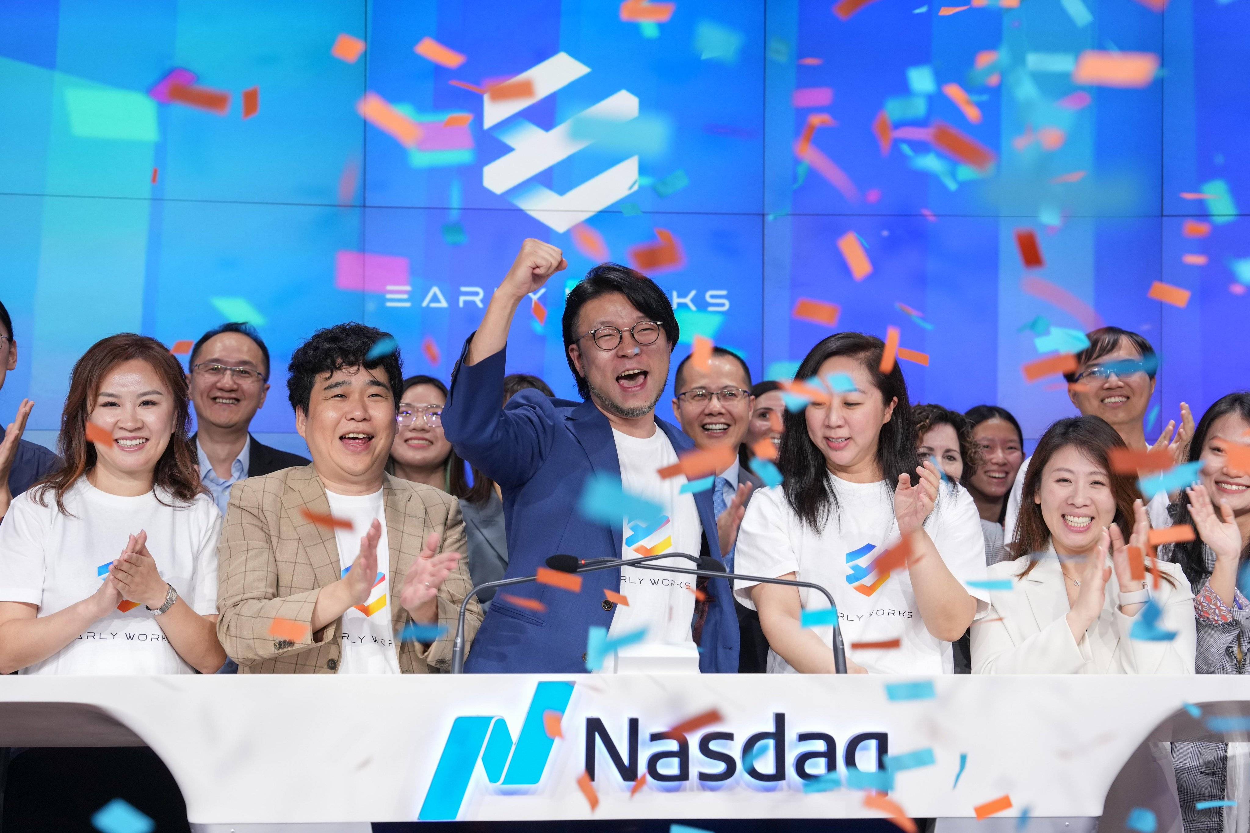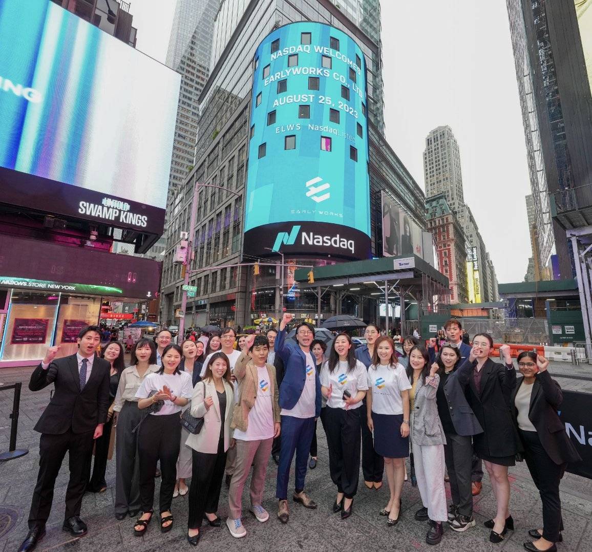 Earlyworks日前在美国纳斯达克举办上市仪式,高管及员工还一起在纽约时代广场合影。