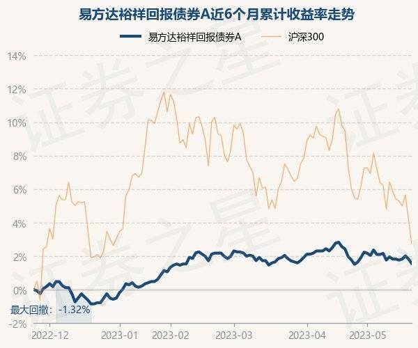 5月24日,易方达裕祥回报债券A最新单位净值为1.539元,累计净值为1.704元,较前一交易日下跌0.26%。历史数据显示该基金近1个月下跌0.19%,近3个月下跌0.39%,近6个月上涨1.59%,近1年上涨2.18%。该基金近6个月的累计收益率走势如下图: