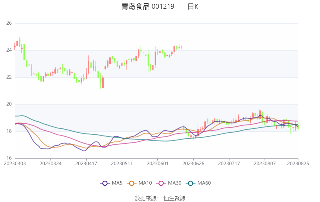 以8月25日收盘价计算,青岛食品目前市盈率(TTM)约为28.07倍,市净率(LF)约为2.89倍,市销率(TTM)约为5.45倍。