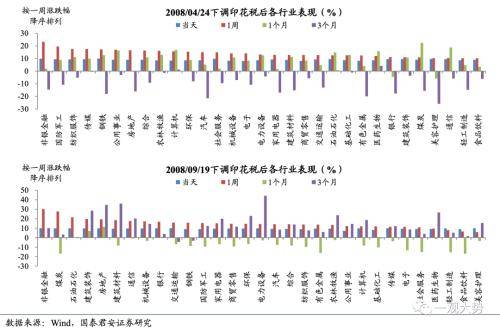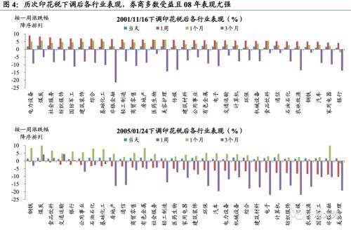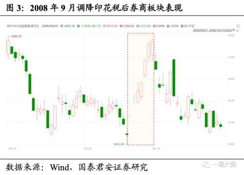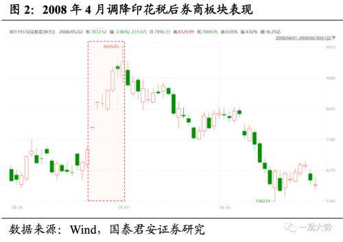 激活市场情绪,券商率先受益。从调降后市场主要指数表现来看,大盘指数多有明显上行,印花税下降对市场情绪提振效果明显。大盘指数上行+让利激活市场,券商经纪及投资业务等直接受益,回顾历次调降后,券商板块有较为明显的上行趋势,并且多数走出超额行情。2008年4月和9月两次调整后,券商指数均于首日接近涨停,行情持续达7个交易日,累计涨幅分别达到37.68%和49.29%。