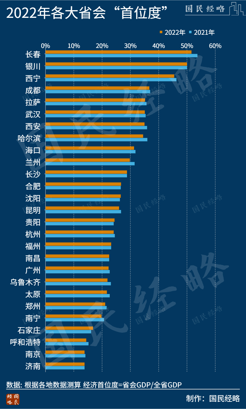 这里的强省会,说的不是本身GDP总量之高、经济实力之强,而是省会经济首位度、人口首位度之高。