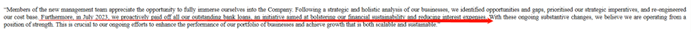 收入上涨、亏损收窄、经营带来现金正向流入……可以看到,博实乐的持续经营业务初具规模,且保持着健康增长的趋势,这让公司正从转型阵痛中恢复过来。财报中,周鸿儒还提到了博实乐一直以来的偿债压力,“2023年7月,我们主动还清了所有未偿还的银行贷款,这一举措旨在增强我们的财务可持续性并减少利息支出。”