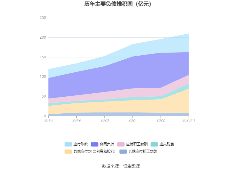 负债重大变化方面,截至2023年二季度末,公司合同负债较上年末减少35.42%,占公司总资产比重下降6.72个百分点;应付账款较上年末增加37.58%,占公司总资产比重上升2.23个百分点;其他流动负债较上年末减少80.04%,占公司总资产比重下降0.77个百分点;一年内到期的非流动负债较上年末增加13.14%,占公司总资产比重上升0.01个百分点。