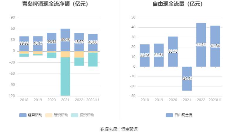 进一步统计发现,2023年上半年公司自由现金流为41.84亿元,相比上年同期下降9.60%。