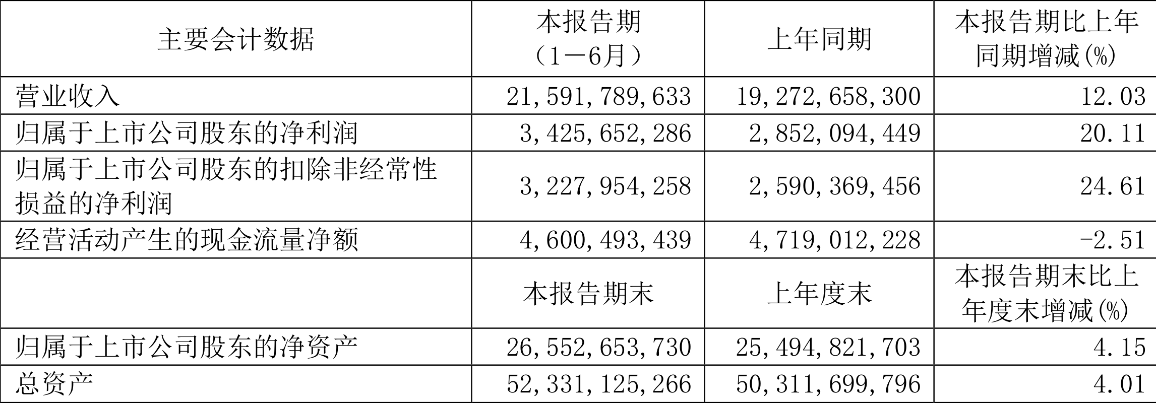 根据半年报,公司第二季度实现营业总收入108.86亿元,同比增长8.16%,环比增长1.68%;归母净利润19.74亿元,同比增长14.40%,环比增长36.05%;扣非净利润18.78亿元,同比增长19.76%,环比增长39.20%。
