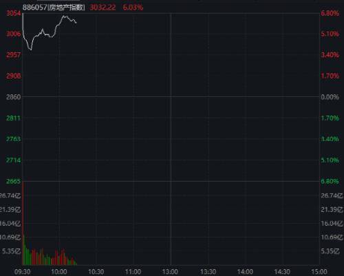 牛市旗手略有平复后,房地产接棒,冲上申万一级行业,指数大涨6%,近30只个股涨停。