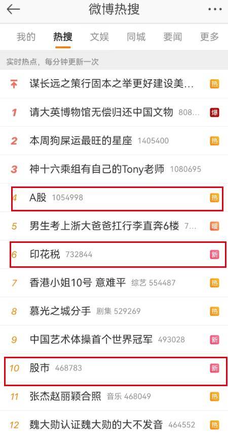 A股在还没开盘的时候就又一次登上了微博热搜,且排名持续上升,同步上榜的还有印花税、股市等词条。