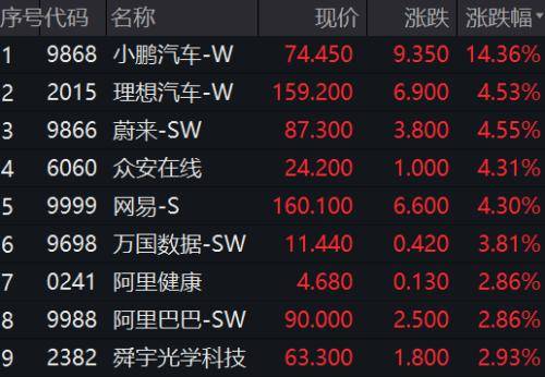 港股市场早间先涨为敬:恒指高开3.13%,恒生科技指数涨4.88%。不过截至发稿,涨幅亦有回落,房地产、新能源车涨幅居前。