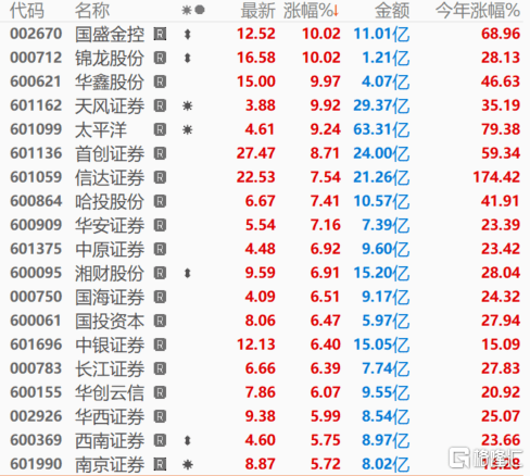 国盛金控、锦龙股份、华鑫证券、天风证券等多股涨停。消息面上,财政部、税务总局27日公告,证券交易印花税实施减半征收。另外,针对证监会调整融资保证金最低比例由100%降低至80%,开源证券非银首席高超表示,两融扩表可期,不考虑需求侧,以融资保证金比例下调20%计算,预计券商融出规模上限将增加25%(供给侧),预计将拉动上市券商整体净利润增长13%,全面看多券商板块。