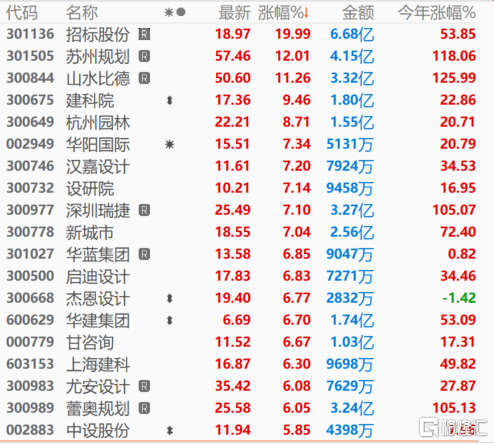 招标股份20CM涨停,苏州规划、山水比德涨超11%,建科院、杭州园林等股跟涨。