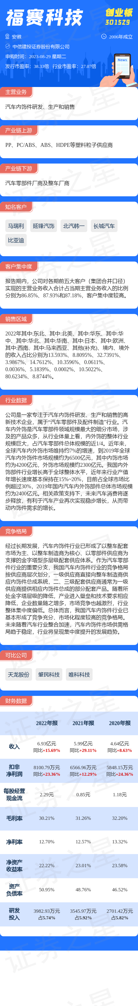 福赛科技8月29日网上申购,申购代码为301529,中签号公布日期为8月31日。该股概况请见下图: