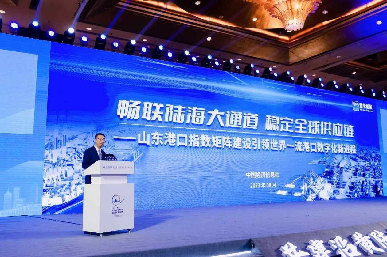 图为中国经济信息社指数事业部主任曹占忠发布解读《新华·山东港口大宗商品指数年度运行报告(2023)》