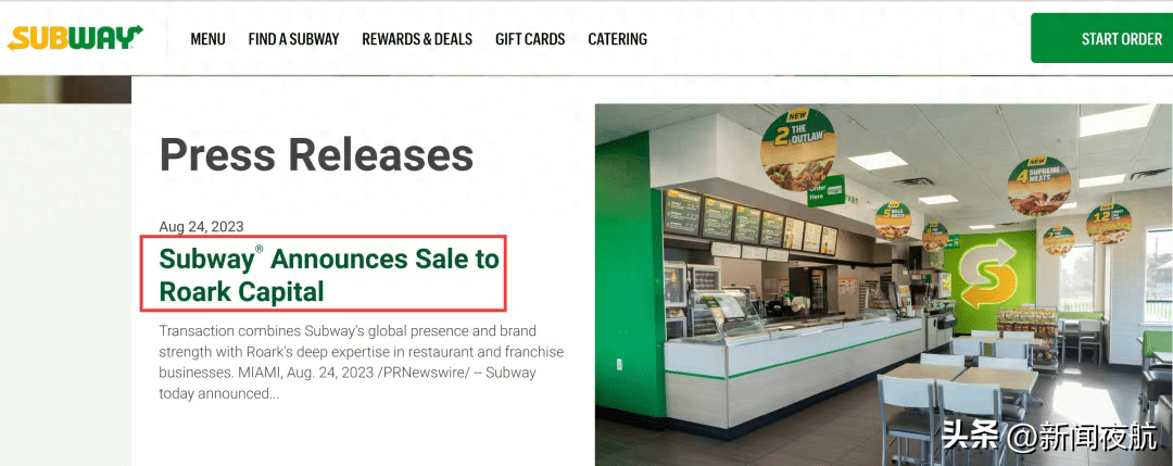 当地时间8月24日,美国最大的三明治公司赛百味在官网上公告了这一消息,具体金额并未透露,买家是一家私募股权机构Roark Capital。