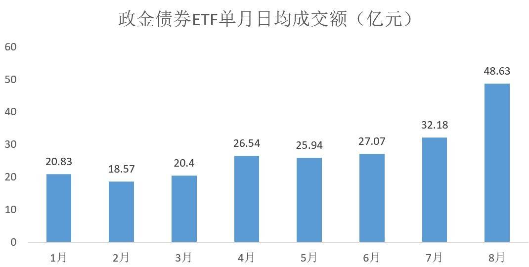 WIND数据显示,政金债券ETF(511520)近一个月资金持续流入,今日规模突破50亿元。由于备受资金青睐,政金债券ETF交易活跃度持续攀升。8月25日,政金债券ETF单日成交额高达71.91亿元,创历史新高;截至8月28日,政金债券ETF8月日均成交额为48.63亿元,为成立以来新高。