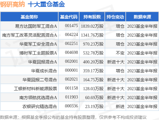 重仓钢研高纳的前十大公募基金请见下表: