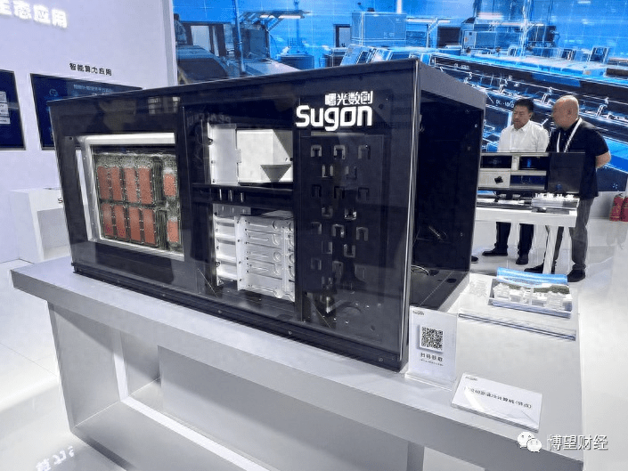 在2023年算力大会上,中科曙光做了充足的准备,“黑科技”大赚眼球,一块块服务器主板浸泡在透明液体箱子里,随着服务器开启工作,周围的液体不断“咕嘟”冒泡,有种“水煮主板”的感觉。