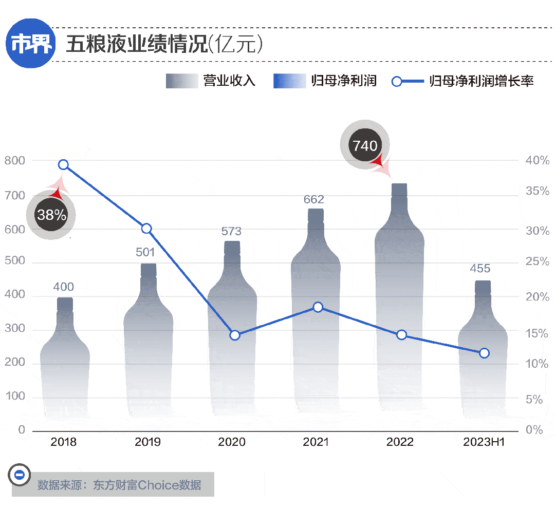 不过,从上半年的业绩表现来看,即使有新品加持,系列酒也并没有撑起五粮液的“半边天”。