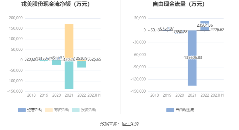 进一步统计发现,2023年上半年公司自由现金流为2226.62万元,相比上年同期下降91.85%。