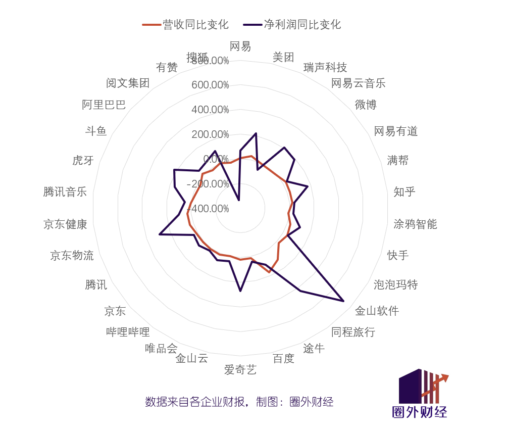 除了业绩炸裂的四家头部大厂外,还有多家立足垂直赛道的互联网企业也尝到了甜头。
