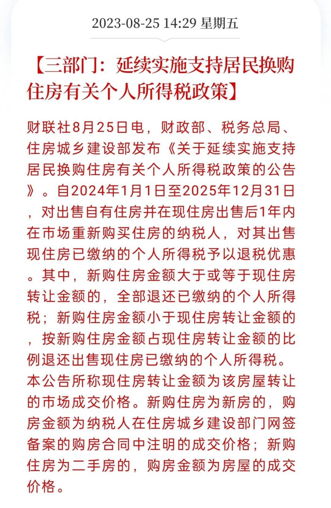 不止是认房不认贷政策正在逐步落地,上周官方宣布卖一买一免个税政策也将延续。