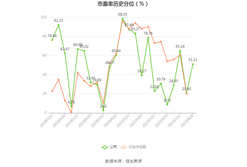 市盈率为负时,不显示当期分位数,会导致折线图中断。