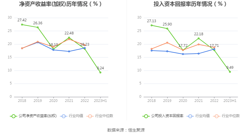 数据显示,2023年上半年公司加权平均净资产收益率为9.24%,较上年同期增长0.51个百分点;公司2023年上半年投入资本回报率为9.49%,较上年同期增长0.81个百分点。