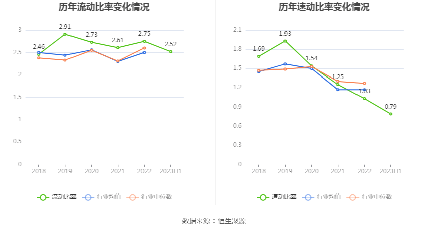 2023年上半年,公司流动比率为2.52,速动比率为0.79。
