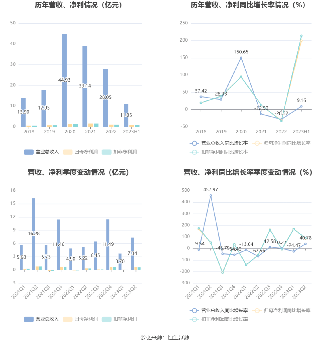 根据半年报,公司第二季度实现营业总收入7.34亿元,同比增长40.78%,环比增长98.26%;归母净利润6671.24万元,同比增长85.42%,环比增长772.64%;扣非净利润6429.62万元,同比增长88.38%,环比增长763.04%。