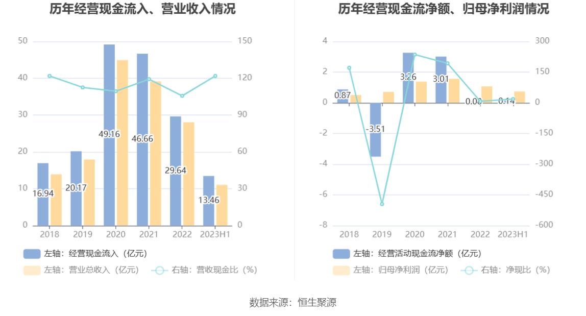2023年上半年,公司营业收入现金比为121.85%,净现比为18.30%。