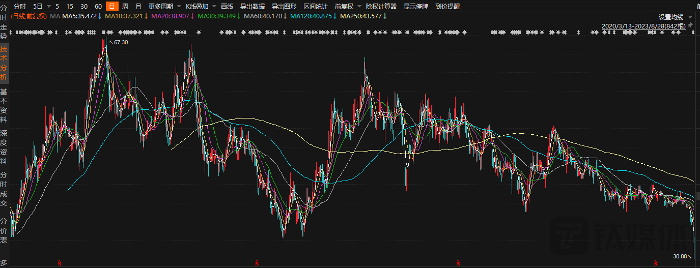 受半年报利空影响,次日(8月25日)大幅低开后不久就触及跌停。受食品加工制造板块持续回落影响,今日高开1.93%后随即迅速下挫,盘中一度创下自2020年3月以来的阶段性新低。截至收盘报32.3元,跌幅4.01%,总市值164亿元。