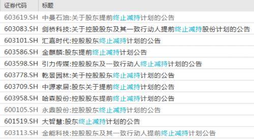 例如,金能科技发布公告称,根据中国证监会进一步规范股份减持行为的规定,并结合自身情况,控股股东秦庆平、王咏梅夫妇及其一致行动人秦璐对减持计划予以终止。
