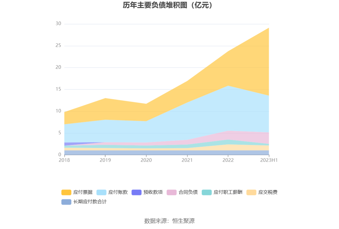 负债重大变化方面,截至2023年二季度末,公司应付账款较上年末减少18.36%,占公司总资产比重下降4.80个百分点;合同负债较上年末增加29.06%,占公司总资产比重上升0.40个百分点;其他流动负债较上年末减少8.80%,占公司总资产比重下降0.04个百分点;一年内到期的非流动负债较上年末减少7.77%,占公司总资产比重下降0.02个百分点。