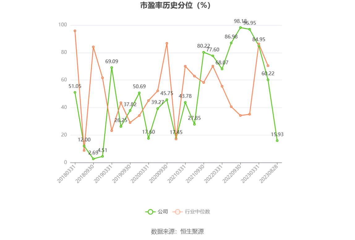 市盈率为负时,不显示当期分位数,会导致折线图中断。
