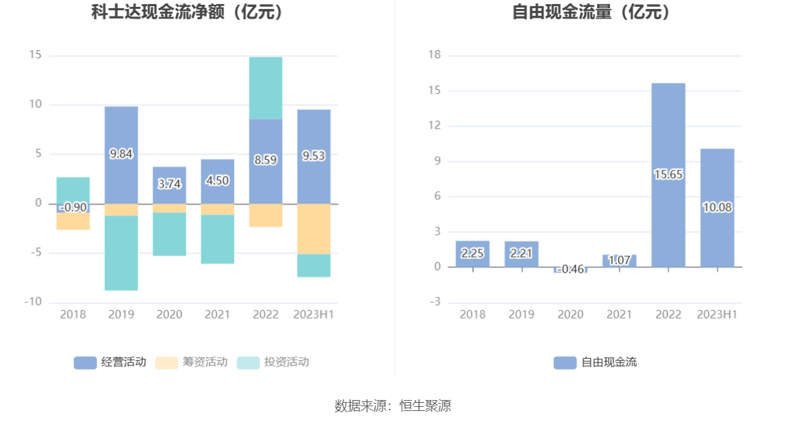 进一步统计发现,2023年上半年公司自由现金流为10.08亿元,相比上年同期增长142.82%。